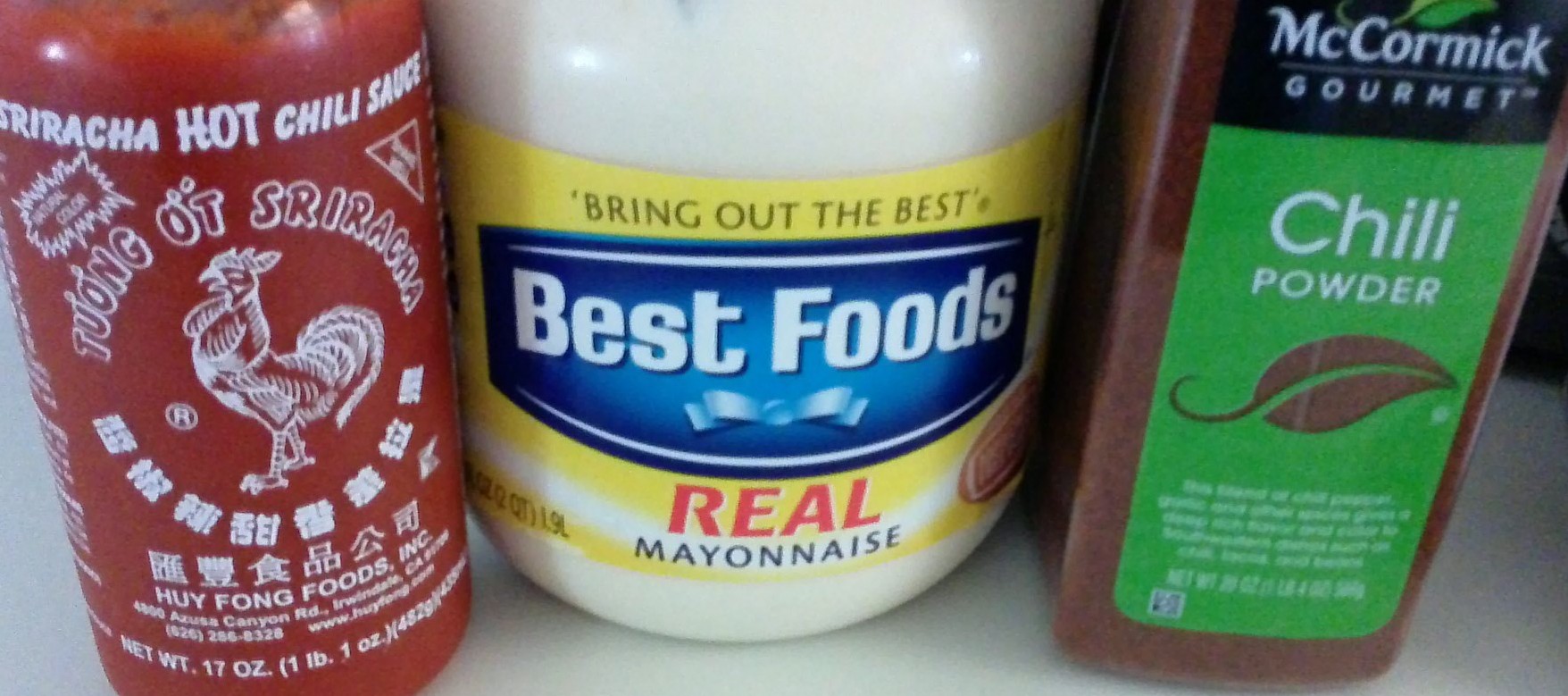 I whipped up a creamy Sriracha sauce. Easy breezy…1 cup of Mayo, 3 Tbls of Sriracha, 1 1/2 Tsp of chili powder and 1/8 a Tip of cayenne pepper. Crazy heat! At least for the girl.